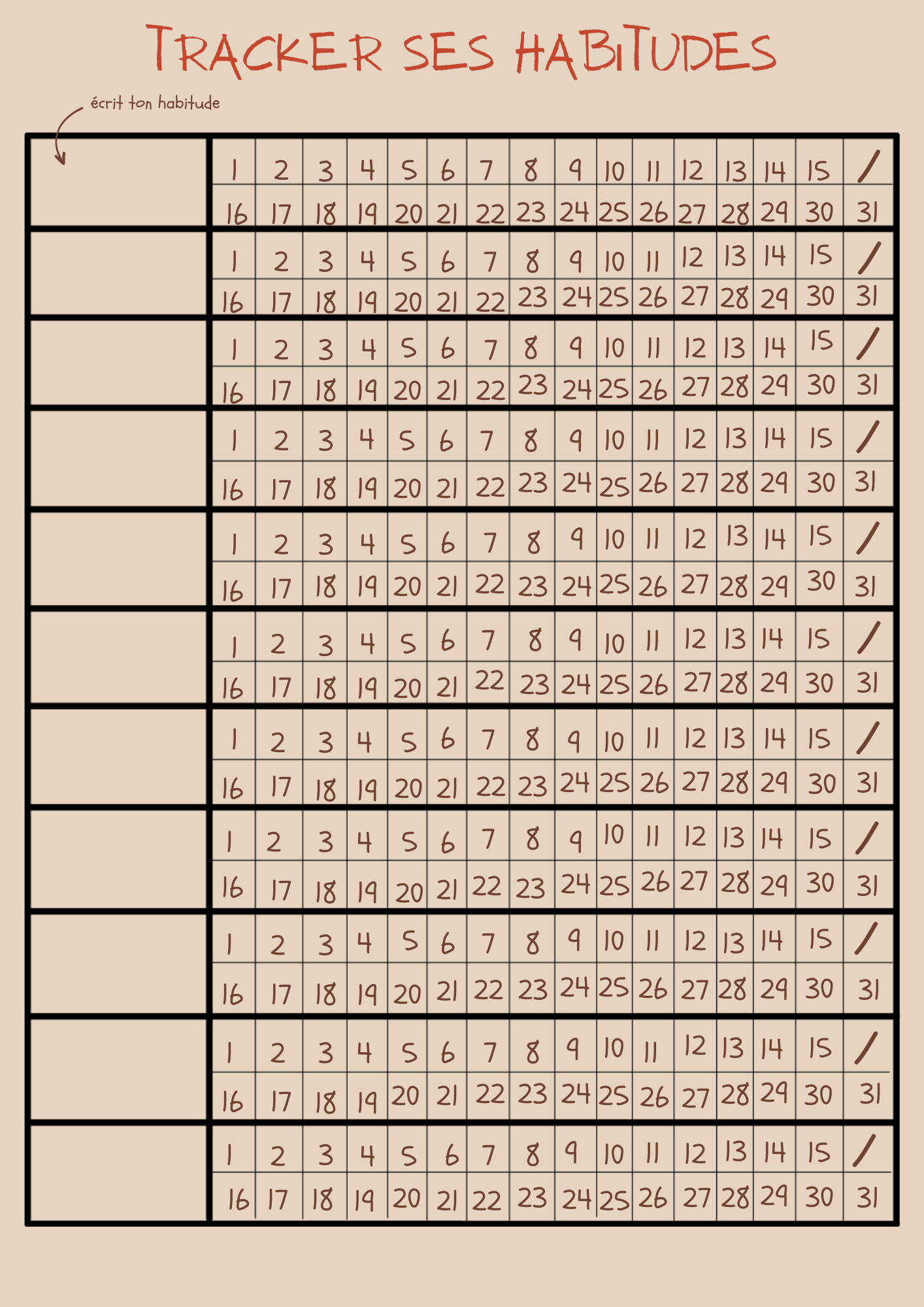 Cet agenda comporte donc : un tracker d’habitudes, plusieurs fiches pour y lister tes cours à apprendre, 31 pages de planification de ton mois à venir et un feed-back du mois écoulé !